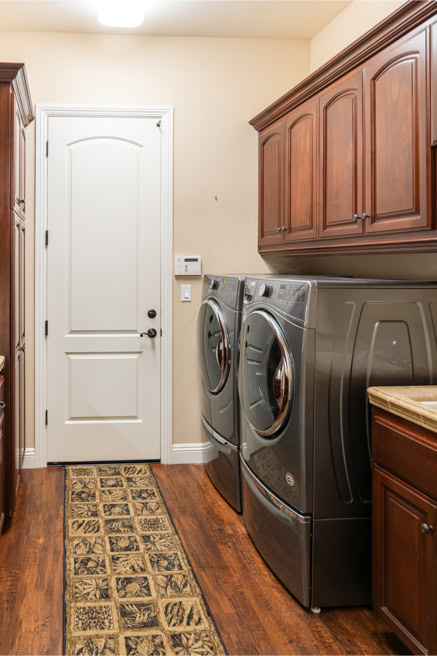 Laundry sink and ample storage in laundry room
