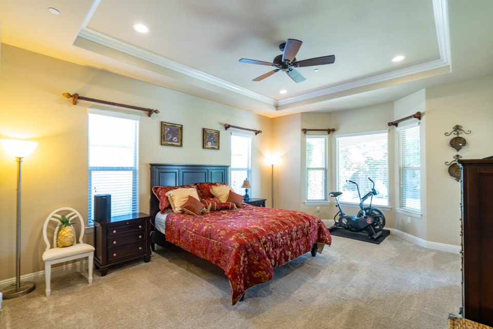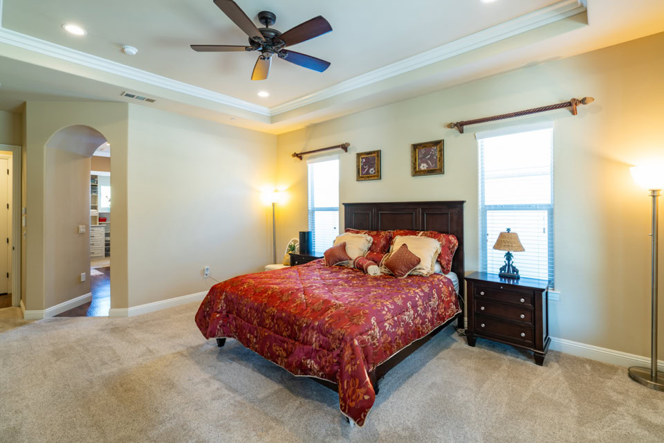 Tray ceiling and crown molding in master