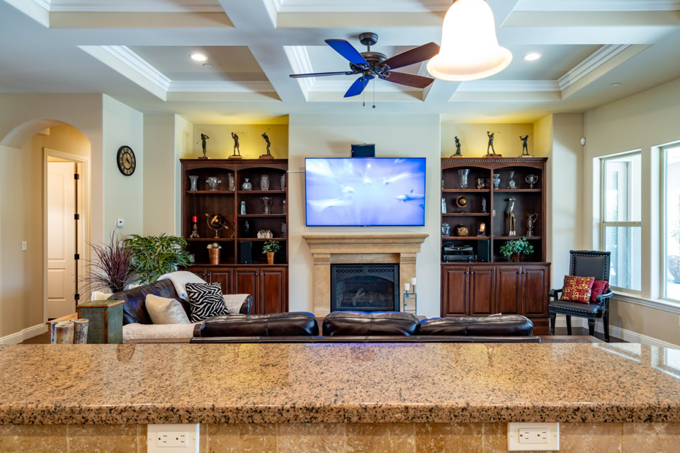 Built-in family room bookcase cabinets
