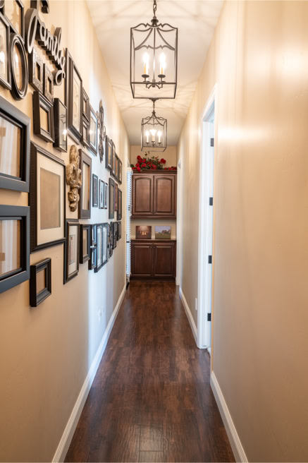 Chandelier lights (5) over back hallway